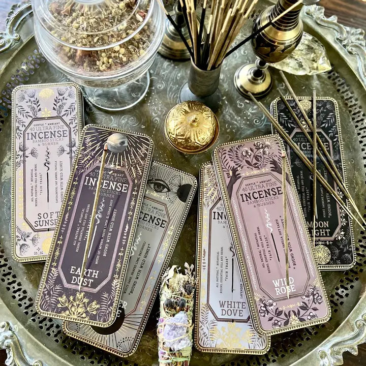 Earth Dust is a gentle, fine ambient incense with notes of Myrrh, Fresh Linen and Cedar Dust. Bound with wild honey.