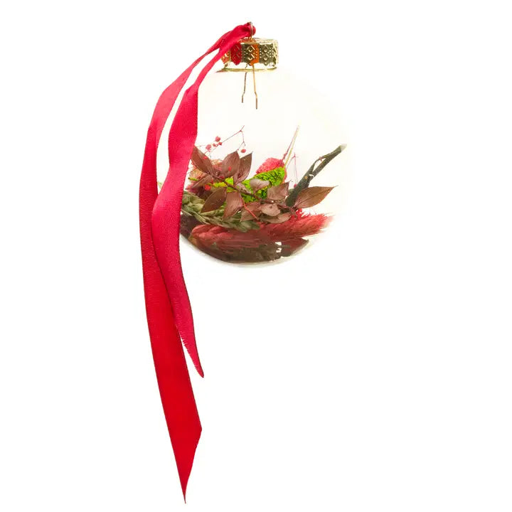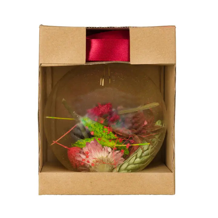 Introducing our exquisite Red and Gold Christmas Bauble with dried flowers - the perfect addition to your holiday decor this festive season! Crafted with meticulous attention to detail, this stunning ornament will add a touch of elegance and warmth to your Christmas tree, creating a magical atmosphere. Available in red and gold, packed in a small gift box. The diameter of the ornament is 9 cm.
