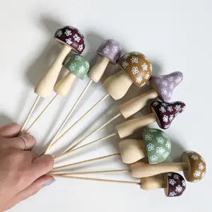A cute little friend to keep your houseplants company! Hand painted and sealed for moisture protection, these mushrooms are mounted on a skewer to make them easy to add into any pot!