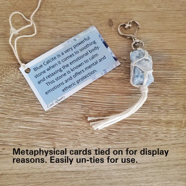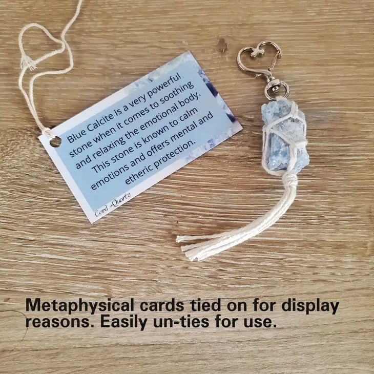 Raw crystal keychains are the perfect way to add a little dazzle dazzle to your keys. *made with real genuine ethically-sourced crystals. All approximately 1 inche large. Each keychain comes with a metaphysical card on the properties of each crystal. This is perfect for resell online or in-store so your customers can read and choose what crystal fits their wants and needs most.