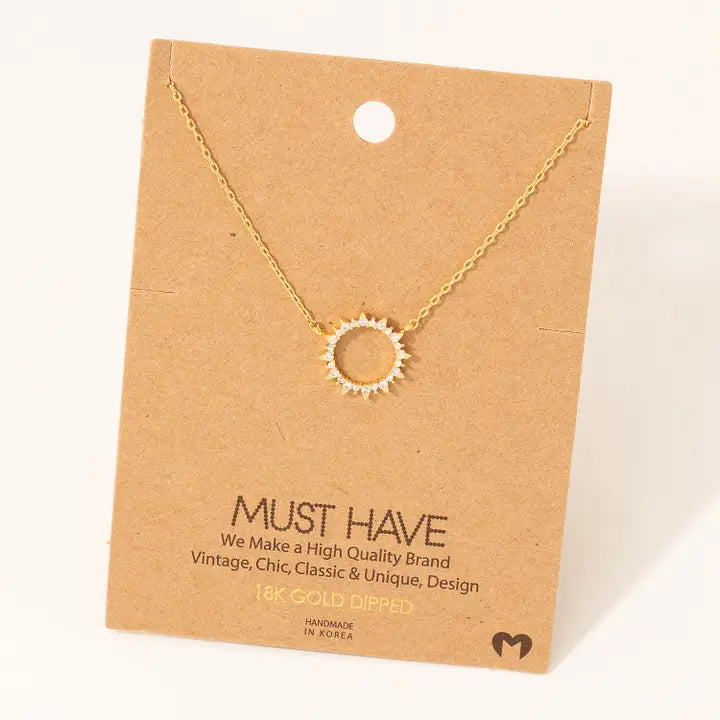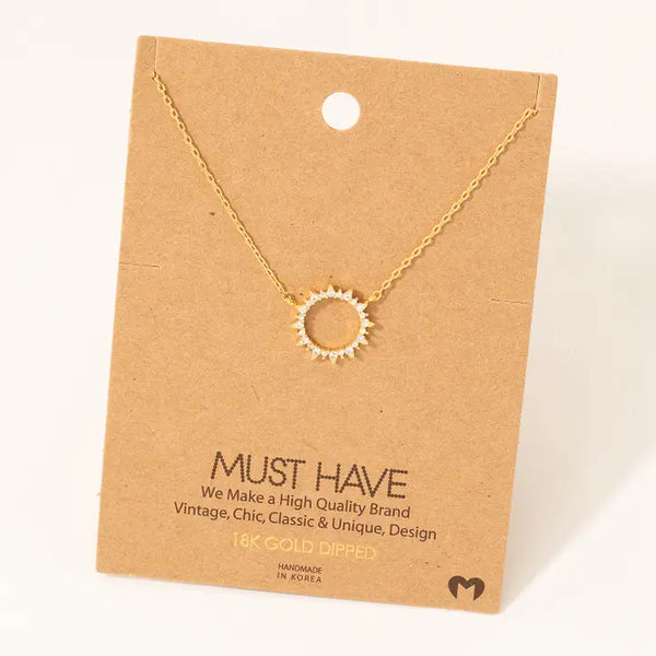 Gold Pave Circle Sun Pendant - $14.99 USD