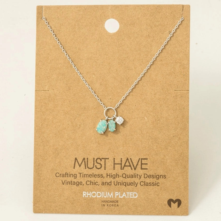 Silver Dainty Opal Crystal Charm Necklace - $14.99 USD